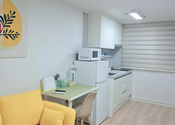 公寓还有设施齐全的厨房。 这间22平方米的公寓距离金浦国际机场有40公里。